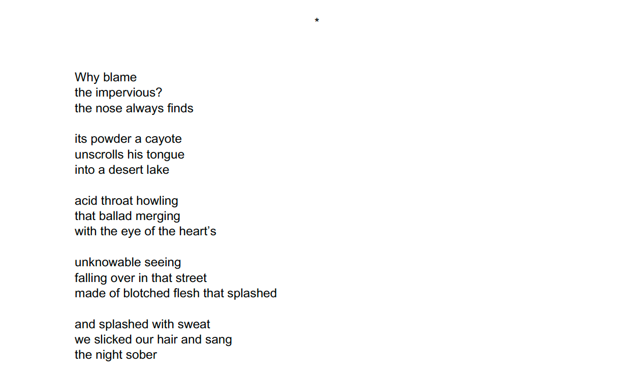 In my latest Afterlife drift, we met up at a food court in Hell. Abuela didn’t look like a zombie this time, but she wasn’t wearing lipstick either. She was wearing her housecoat and slippers. Mall food courts are always on the top floor, so I wondered if this was the top floor of Hell. I don’t know if the Devil was trying to tell us there’s nowhere to go but down, or if this means she’s managed to move up, leaving Cerberus and Beelzebub behind. But even if this was the outermost circle of Hell, it was still Hell. We were surrounded by demons. Some looked like demons and some looked like people, but I knew they were all demons. Demons buying Auntie Anne’s pretzels and Jamba Juice. We browsed the vendors, Original Pizza, Cinnabon, Panda Express, searching for tacos, a seemingly endless maze of mall lighting, stanchions, nylon ropes, counters, red plastic cafeteria trays, and napkin dispensers. Remember, towards the end, how you liked going to the Furr’s Cafeteria at a dying shopping mall? A depressing place where senior citizens got quivery cubes of Jell-O and salty entrees smothered in gravy. Here in Hell, we found the taco stand and you ordered me lengua tacos. You told me to eat up because I’d need my strength. The food court reminded me, too, of long afternoons in line at the charity hospital where we’d go to get your diabetes medications refilled—bright and crowded, packed with uncomfortable chairs and general misery. We found a table and sat down to eat. I said, “I’ve carried you like a wound for the last fifteen years,” before I bit into my tongue and swallowed.